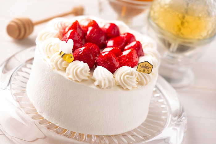 ケーキの上にちょこんと乗った蜜蜂がキュートなパティスリーQBGの定番ショートケーキ「はちみつショート」。