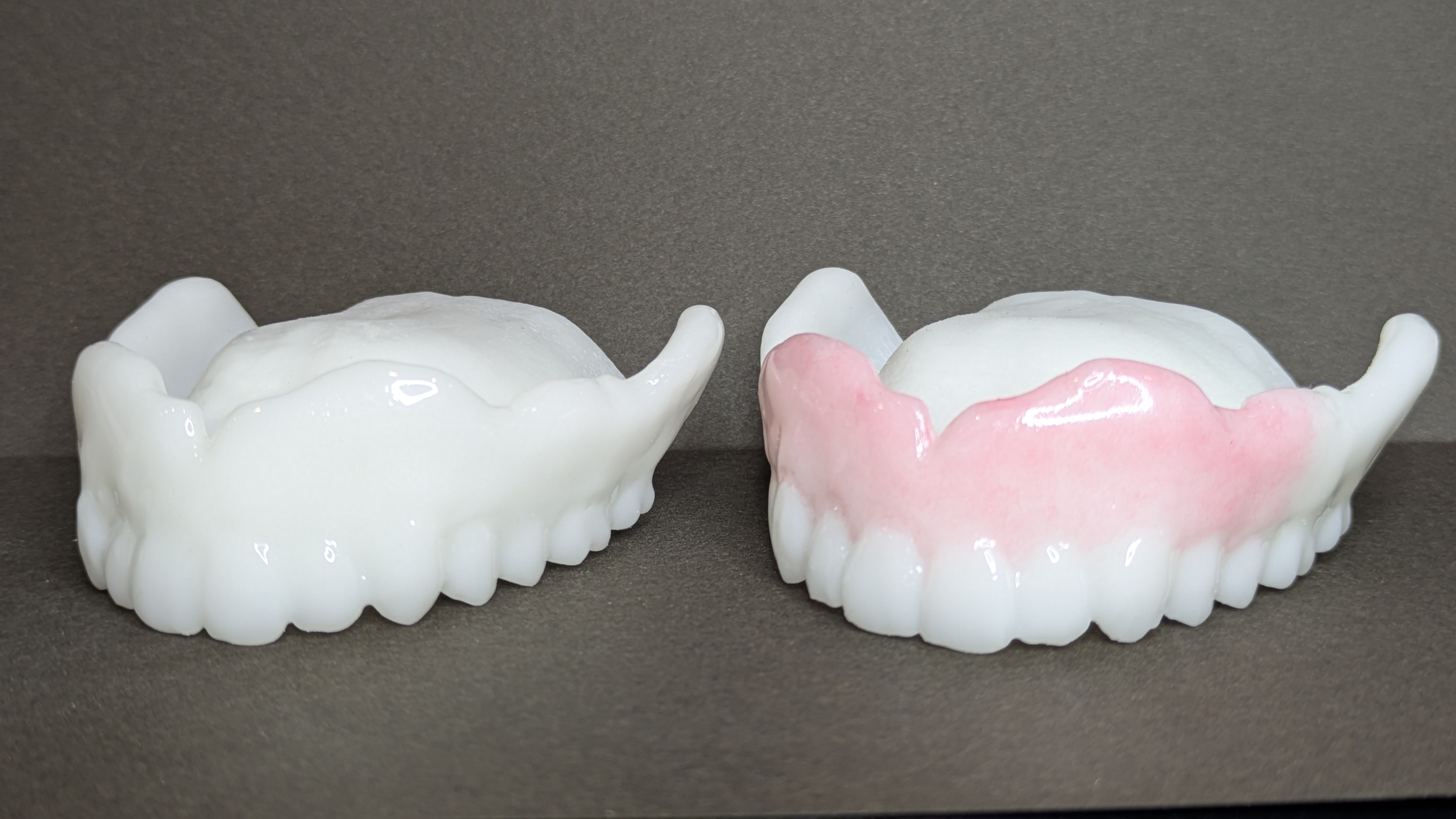 提供当初は白一色が主でしたが、歯茎部分を色付けした二色使いの注文が増えています。