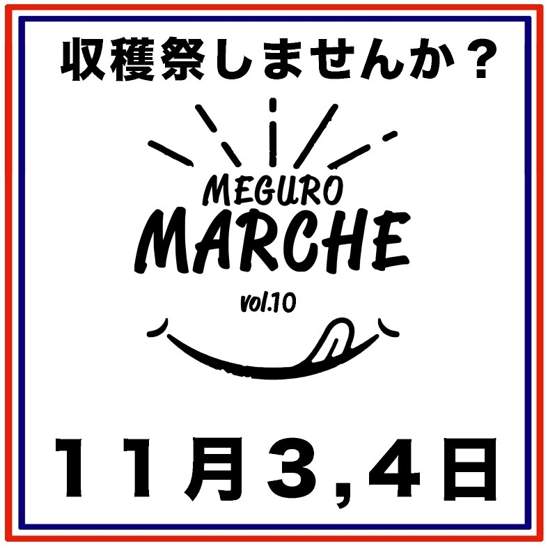 ネット時代だからこそ「つくり手や生産者さん」との交流の場をつくりたい!という想いから定期的に開催しております。目黒通りで開催する「目黒マルシェ」復活第2弾のテーマは「収穫祭!」。「目黒通り」が「マルシェ会場」に変わる2日間です!