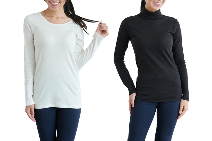 ●【販売10年目記念】綿混あったかインナータートルネック/クルーネック長袖レディース