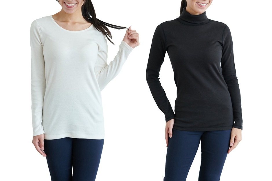 ●綿100%あったかインナー・タートルネック/クルーネック長袖レディース