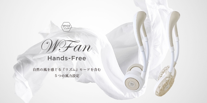 株式会社スパイスが2019年から販売開始したハンズフリー扇風機ダブルファンの販売数は、今年に入りシリーズ累計200万台を突破しました。ハンズフリー扇風機ダブルファンは、首にかけて首元や顔周辺に風を送る暑さ対策グッズで、いつでもどこでも風を持ち運ぶことができます。扇風機には見えないヘッドフォンのようなデザインのため、おしゃれアイテムの1つとして身に付ける人も多くいます。