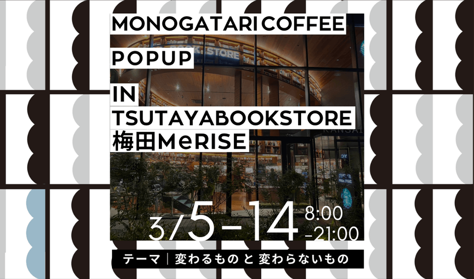 コーヒーと小説のペアリング体験『ものがたり珈琲』が、 TSUTAYA BOOKSTORE 梅田MeRISEにてPOP UP STOREを 3月14日(月)まで開催しました
