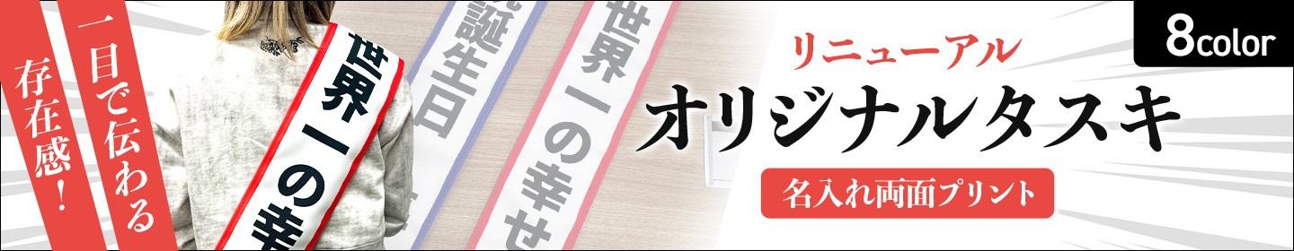 丈夫な生地を採用した両面プリント仕様のオリジナルタスキをリニューアル発売
