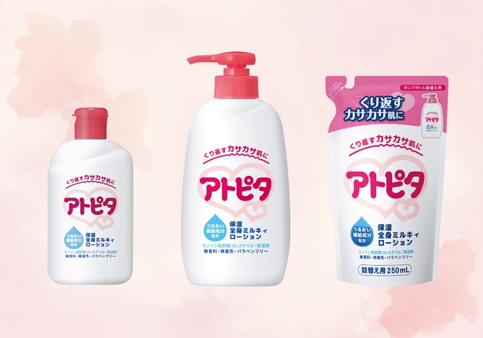 『アトピタ 保湿全身ミルキィローション』は、お肌の水分を閉じ込め乾燥を防ぐ乳液タイプのローションです。お肌のカサカサが気になる赤ちゃんでも使えるよう、とことんやさしさにこだわっています。さらっとのびる使用感も多くの先輩ママ・パパに大好評です。