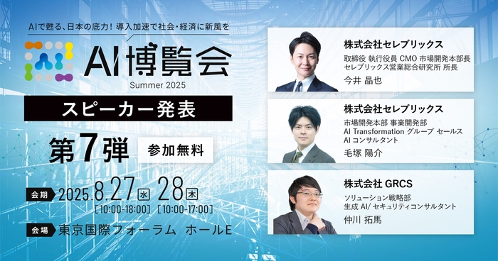 【AI博覧会Summer2025】第7弾スピーカー3名を発表!活用事例から学ぶ、生成AI時代における営業戦略と生成AI活用の攻めと守りの最前線