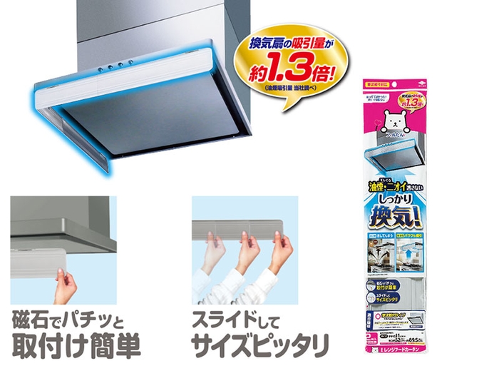 レンジフードに取付けることで、調理時に発生する 油煙や油のニオイの吸引量を高めるためのものです。