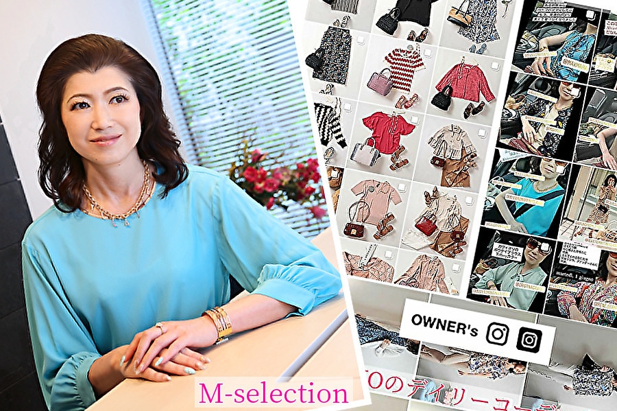 ショップ「M-selection」のHPから紹介するオーナーインスタで、洋服の素材感、この洋服と出会ったストーリー、お勧めポイントなどを紹介しています。日々コーディネートに悩む女性にこれが大人気!
