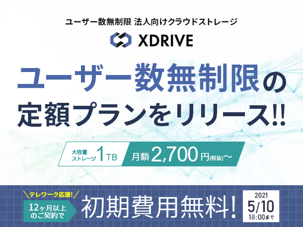 法人向けクラウドストレージサービス『エックスドライブ』 ユーザー数無制限で定額料金の新プランを2月9日(火)より提供開始