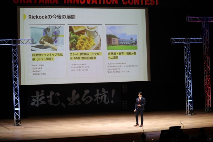 プレゼンで毛利さんは、誰でもどこでもいつでも飼育できる「Rickock」の市場はこれから拡大し、福祉施設やリハビリ施設に導入することによって安心安全で衛生的な飼育体験ができるなど、社会課題の解決にも貢献できる、と社会的な有益性もアピールしました。