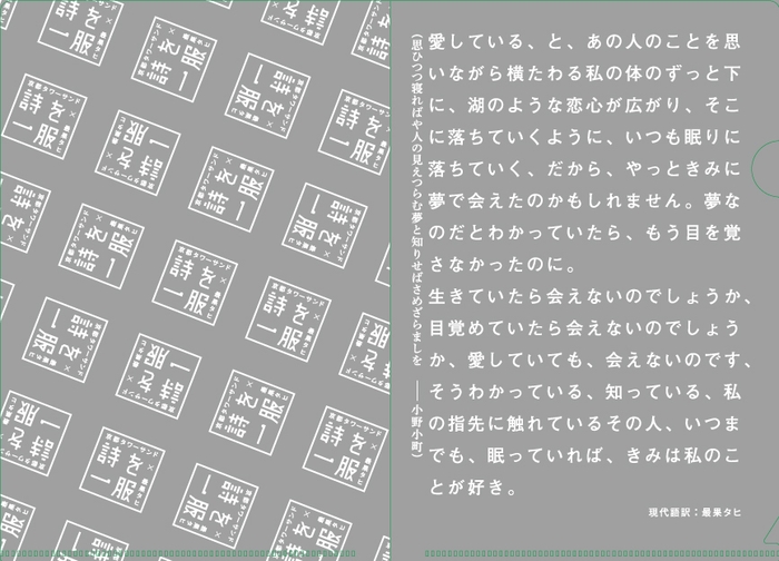 また、選書フェア関連書籍をご購入の方に、「京都タワーサンド×最果タヒ オリジナルA5クリアファイル」をプレゼントします。