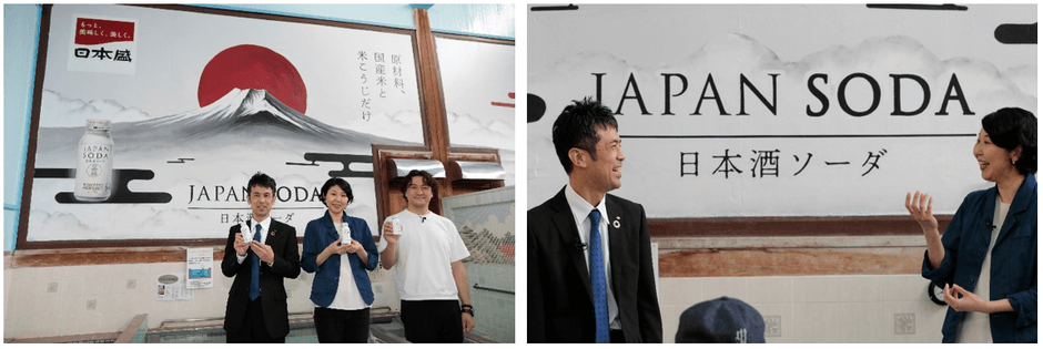甘さ控えめの日本酒ソーダ「日本盛 JAPAN SODA」 3/28全国発売!記念イベント開催! 銭湯ペンキ絵師・田中みずき、自称銭湯の神・ヨッピー、 日本酒や銭湯、“日常の中のリフレッシュ”について熱くトーク!