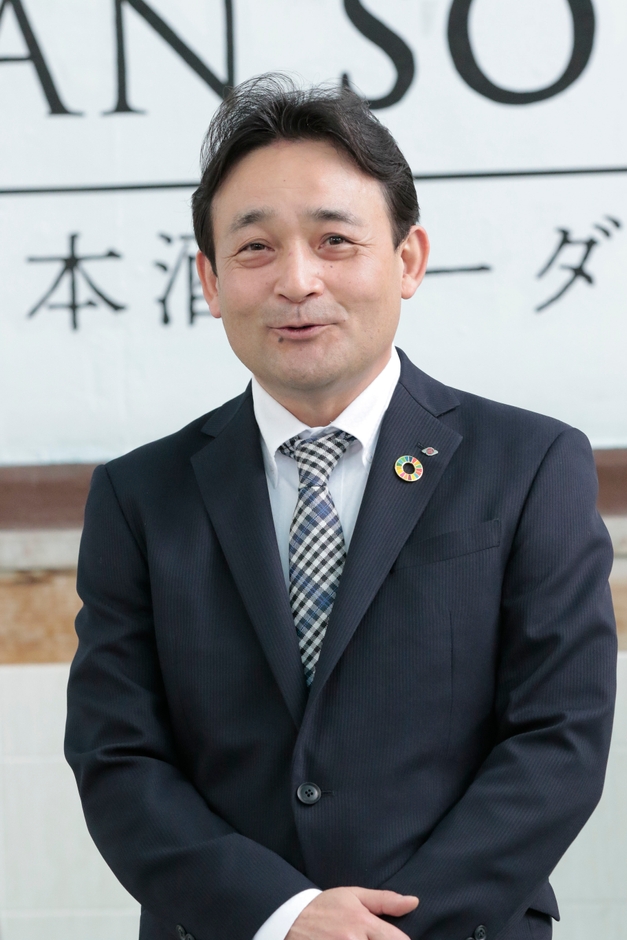 まずは、当社執行役員 営業本部長の松本栄一郎と、商品開発室課長・高野将彰よりご挨拶差し上げました。松本からは「日本盛は、地域に貢献できる事業をしようと青年実業家が発足した株式会社です。当時は今で言うベンチャー企業でして、300年、400年と長い歴史のある酒蔵が多い中、弊社は創業134年目となります。創業当時のチャレンジ精神を今も脈々と受け継いでおり、業界初の商品も多数生み出しております。テレビコマーシャルソングの放映や、化粧品業界への参入も弊社が業界初となっています。そして、本日発表の『JAPAN SODA』、この商品が日本酒業界の活性化に寄与すると確信しております」と、会社説明とともに新商品への意気込みを語りました。