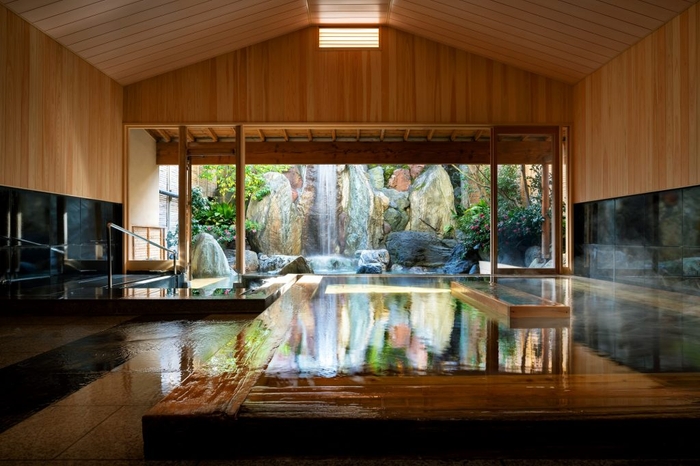 豊富な湯量と泉質を誇る伊東温泉に位置し、湯殿やプール、足湯など存分に温泉を楽しめる宿。伊勢海老、鮑など伊豆の豊かな海の幸を味わう会席料理や四季折々の花を愛でることができる日本庭園が特徴的です。