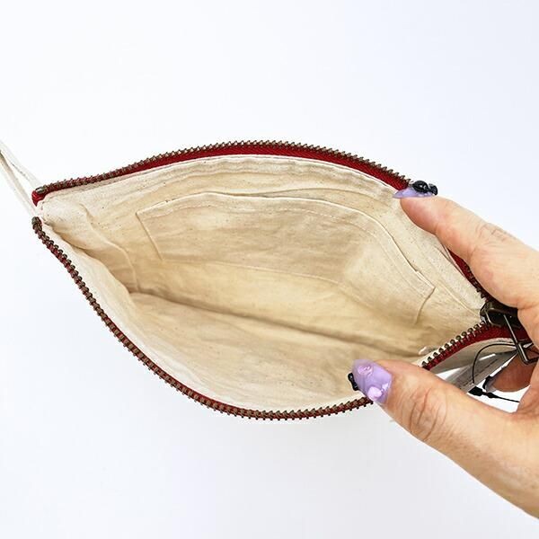 サイズは12cm×20cm。コスメポーチにもペンケースにもなる大きめポーチで存在感も抜群。バッグにいれていつも持ち歩いてください。