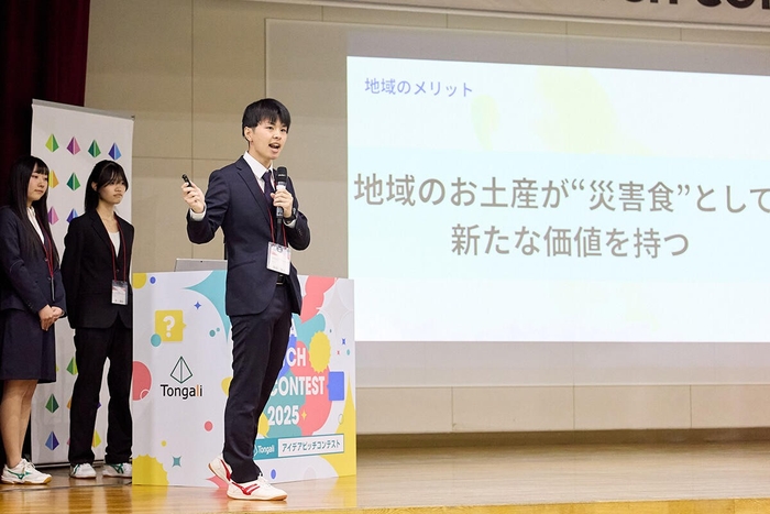 「災害時でも食べたいものを食べられる環境に!」をコンセプトに、防災食の開発を目指すPolaris。“いかにも非常食”というものとは一線を画し、お土産として贈りたくなる、デザイン性を兼ね備えた「お土産×災害食」の商品開発にチャレンジし、「Tongaliアイデアピッチコンテスト2025」で「名鉄賞」を受賞しました。