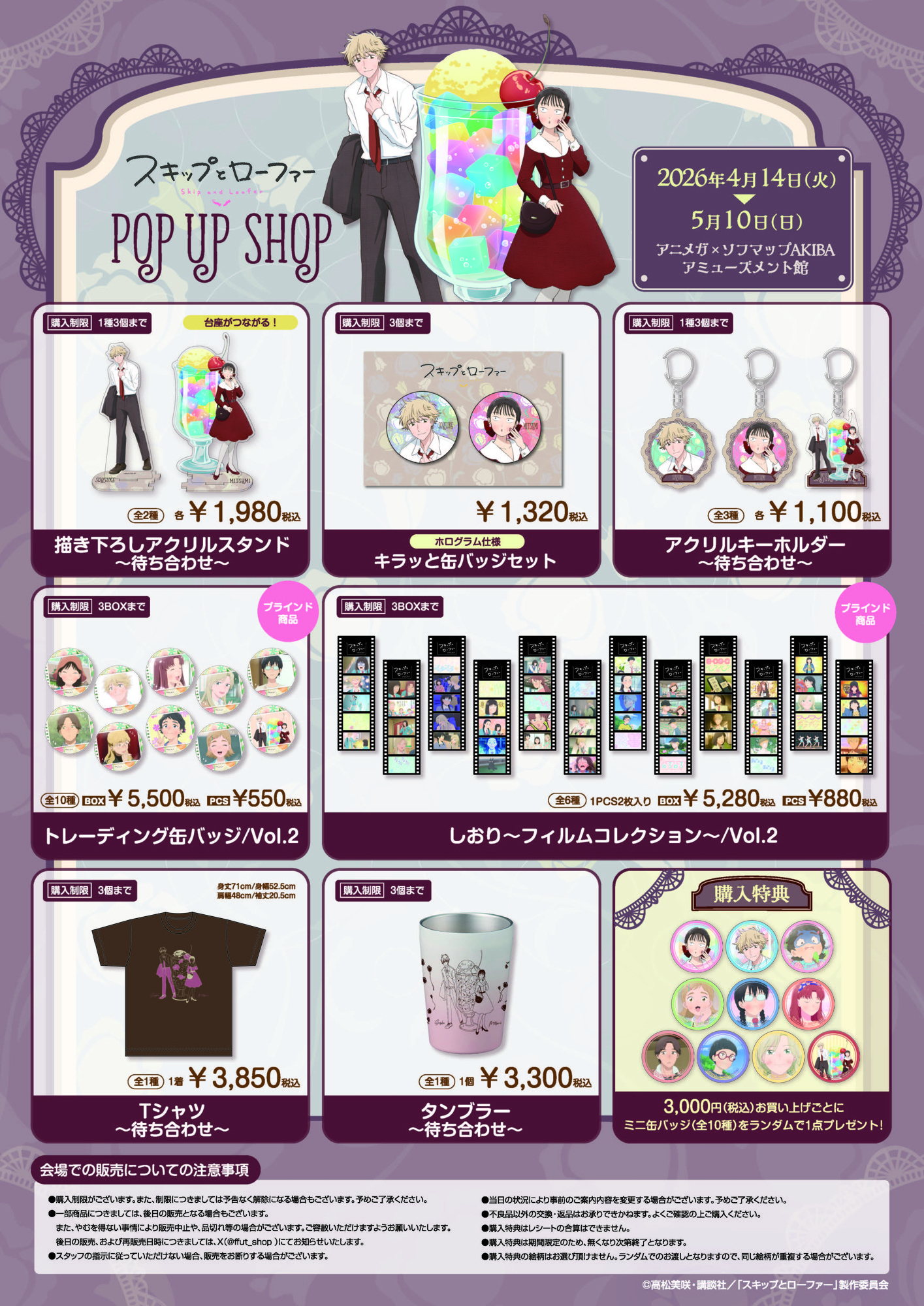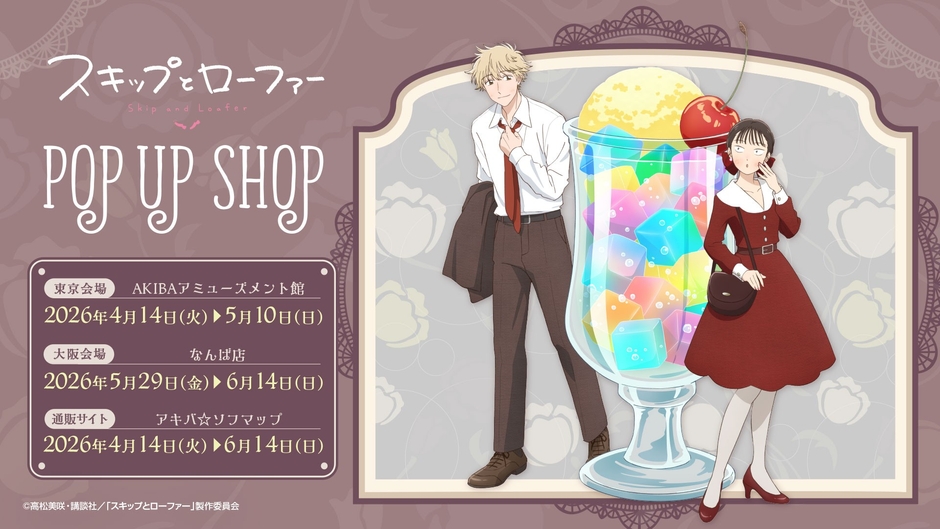 株式会社ブリスコラはアニメガ×ソフマップにて2026年4月14日(火)からTVアニメ『スキップとローファー』のポップアップショップを東京と大阪で開催します。