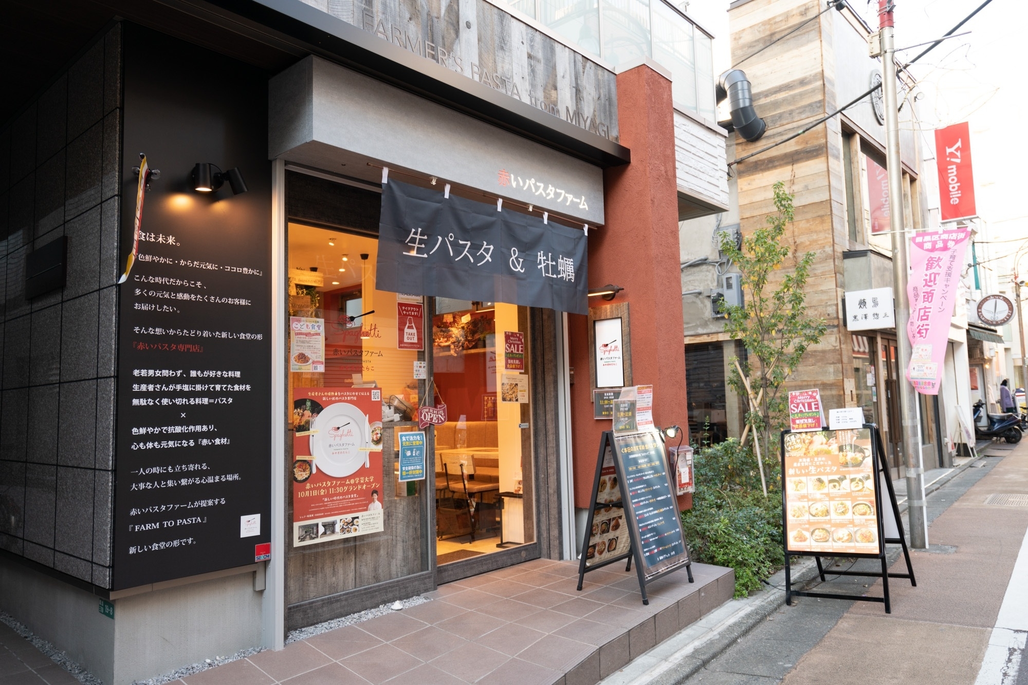 『赤いパスタファーム』は、東京都目黒区、住みたいまちとして人気の下町『学芸大学駅』(東急東横線)の西口商店街に生パスタ専門店としてOPEN。元々は三陸のワインと食材をメインにした『三陸ワイン食堂・ケラッセ東京』を新宿で営業していた当社がコロナ時代にも強い食事業態を模索する中でOPENしたパスタ専門店です。
