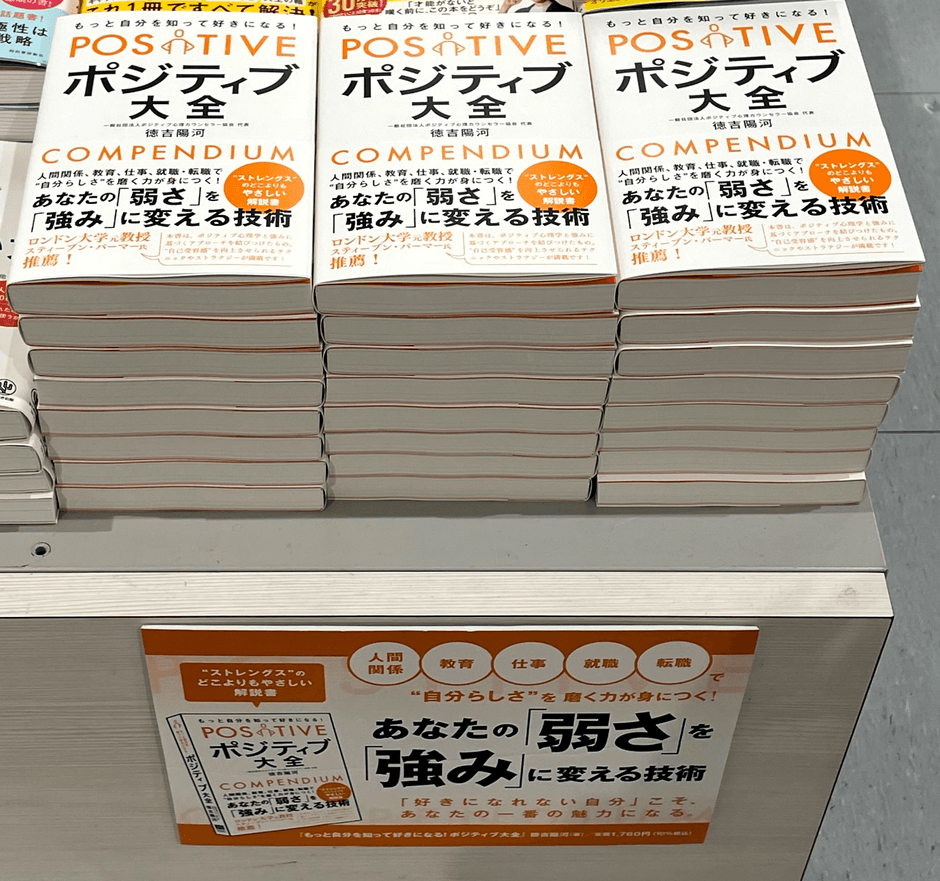 一般社団法人ポジティブ心理カウンセラー協会事務局(本部:東京都港区、代表理事:徳吉陽河)は,総合法令出版社(所在地:東京都中央区)を通じて『《ポジティブ大全》「あなたの弱さを強みにする技術」』(通称:ポジ全)を2023年5月10日(水)に出版いたしました。