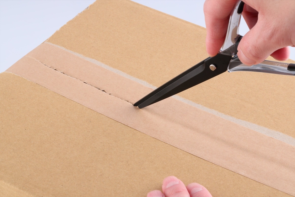 本商品は刃体がスライド式になっており、刃先を少し出す事ができるため、ネット注文で届いたダンボール等を、ハサミでサッと引くだけで簡単に開梱する事ができます。また、刃物の町関市の職人が1本1本丁寧に刃付けをしているため、厚紙やビニール等の切りにくいものも軽く切る事ができます。
