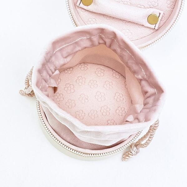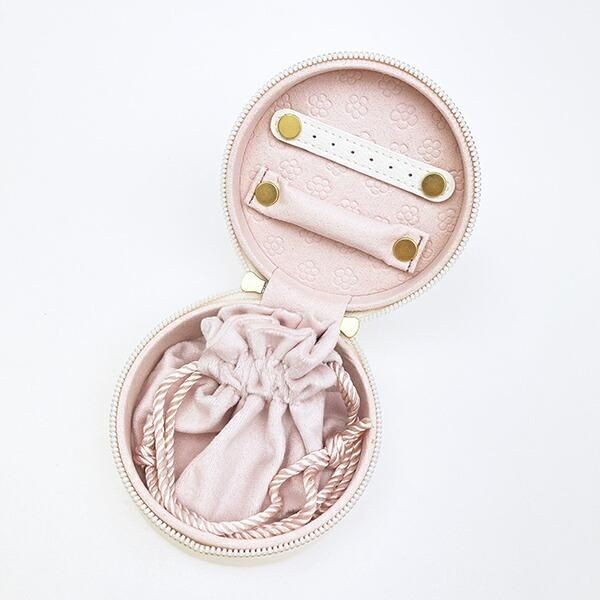 このラウンド型のいちばんの特徴は、巾着がケースと一体になっているところ。ネックレスやバングル、ヘアアクセサリーなど、大ぶりのアクセサリーもまとめて収納できるのが嬉しいポイント。
