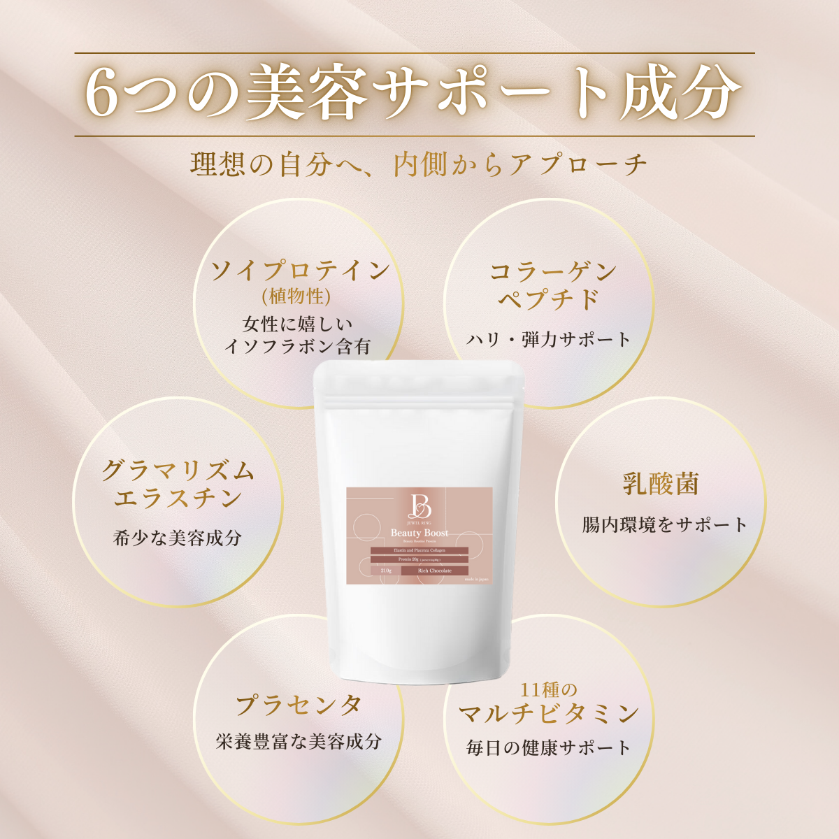 「Beauty Boost」は、女性のからだと美容に寄り添う6つの成分を配合しています。