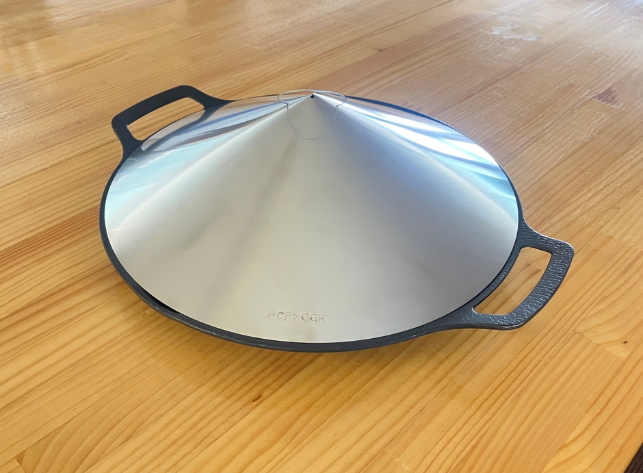 YouTuber FUKUさんと、キャンプに持っていきやすいようにかさ張らないフタを作りたいという思いから始まった商品で、CGK商品の特徴であるペラペラなステンレスを使って組立式のフタとして実現させました。キャンプシーンで定評のあるマルチグリドルを想定したサイズで開発しました。