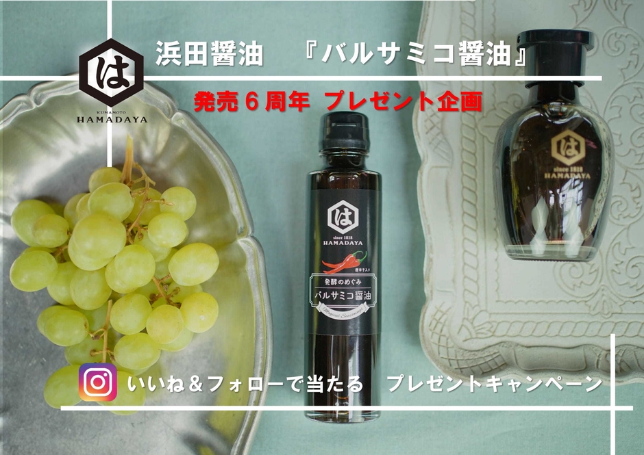 1818年創業の醤油メーカーの浜田醤油株式会社(所在地:熊本県熊本市、代表取締役:ダニエル ソー)は、和食・洋食どちらにも合う万能調味料「バルサミコ醤油」の発売6周年を記念した、『バルサミコ醤油 発売6周年プレゼント企画』を、2021年1月23日(土)より開催します。