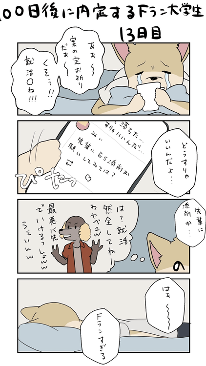 現在Twitterにて連載中の『100⽇後に内定するFラン⼤学⽣』。