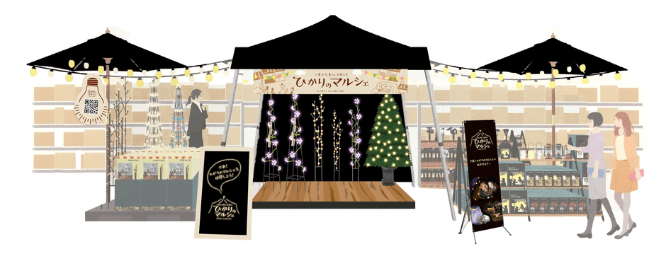 既存のクリスマスのもつシーズンモチベーションを活かしつつ、暮らしに「ひかり」を取り入れる魅力を“マルシェ”というかたちで再現し、店舗で体験し、家に買って帰って体験できる、そのようなお買い物を提供いたします。また企画の主語を「クリスマス」から「ひかり」に変えることでクリスマスシーズンだけでなく、年中ひかりを楽しんでいただける提案をしてまいります。『ひかりのマルシェ・プロモーションWEBサイト』では、暮らしに「ひかり」を取り入れる魅力を体験できるムービーや、ひかりに触れ合うきっかけをつくるInstagram投稿キャンペーンなど、生活者の方々に楽しんでいただけるメニューを随時発信してまいります。