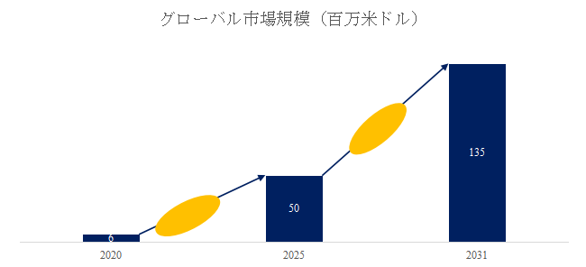 市場規模:2031年に1.35億ドルへ、年平均17.8%で急成長