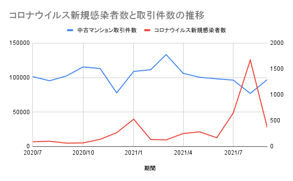 当結果は、東京都内のコロナウイルスによる感染者数の減少およびそれに伴う需要回復により、取引件数が増加しているものではないかと推測されます。