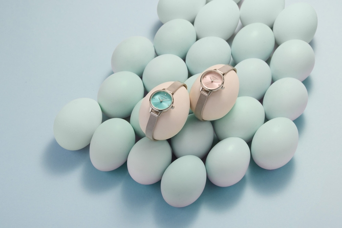 クラシックな佇まいに遊び心を添えて再構築された23mmの小さなフェイス。まるでジュエリーのように繊細な輝きを放つミニウォッチは、アクセサリーと軽やかに重ね付けをしても、一点で上品に主張しても美しいデザインです。光を受けて表情を変えるサンレイダイヤルには、さりげないクリスタルインデックスが煌めき、手元にエレガントさを与えます。ターコイズ、チョークブルー、フォレストグリーンといったバケーション気分を高めるカラーに、シルバーホワイトやシャンパンゴールドなどのニュートラルカラーを組み合わせ、洗練された夏のスタイリングを完成させます。