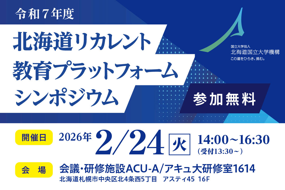 北海道国立大学機構は、「北海道リカレント教育プラットフォーム シンポジウム」を2026年2月24日(火)に札幌市内およびオンライン(Zoom)にて開催します。