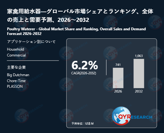 本記事は、QY Research発行のレポート「家禽用給水器―グローバル市場シェアとランキング、全体の売上と需要予測、2026~2032」に基づき、市場動向および競合分析の概要を解説します。