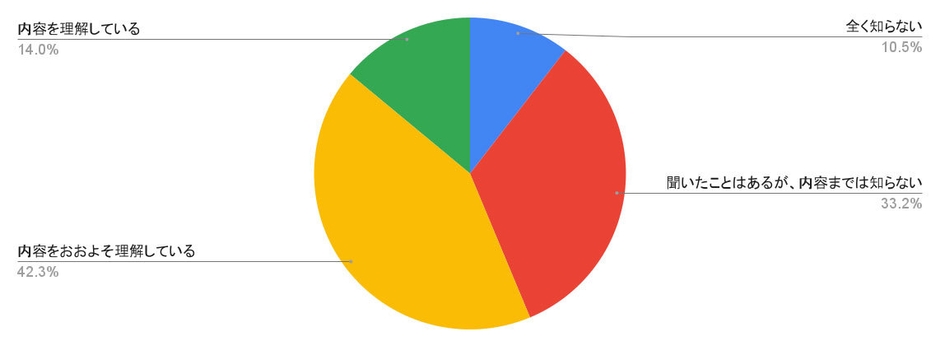 「内容をおおよそ理解している」と答えた方が最多の42.3%でした。次いで多かったのが「聞いたことはあるが、内容までは知らない」で33.2%。