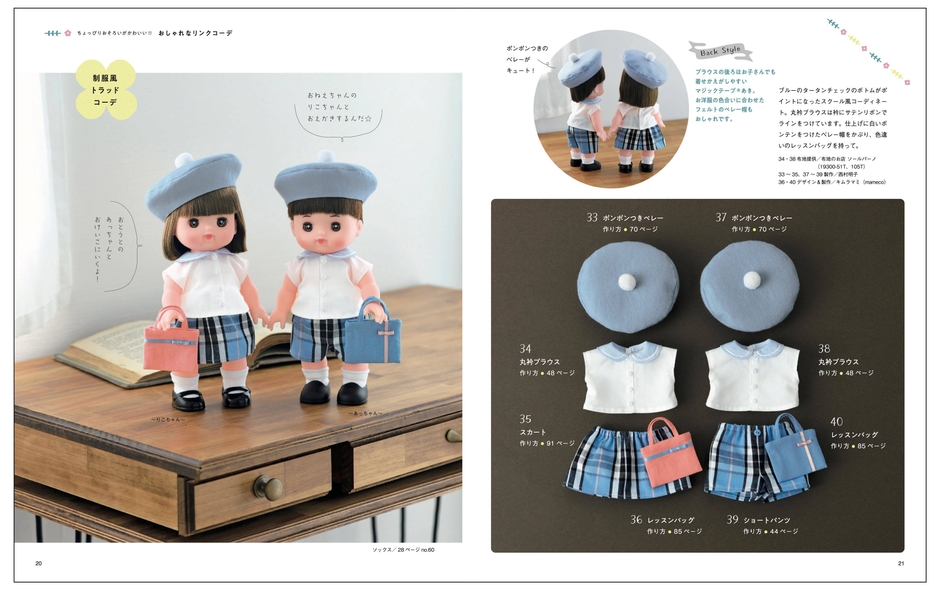 あどけない表情がかわいらしいメルちゃんと、おねんねが大好きないもうとのネネちゃん、ふたりとなかよしのおともだちにぴったりなお洋服とこものをご紹介しています。