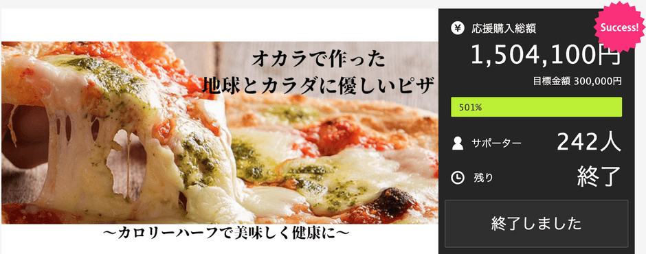 ■クラウドファンディング:達成率500%、支援額:150万円以上を記録した『おから商品』