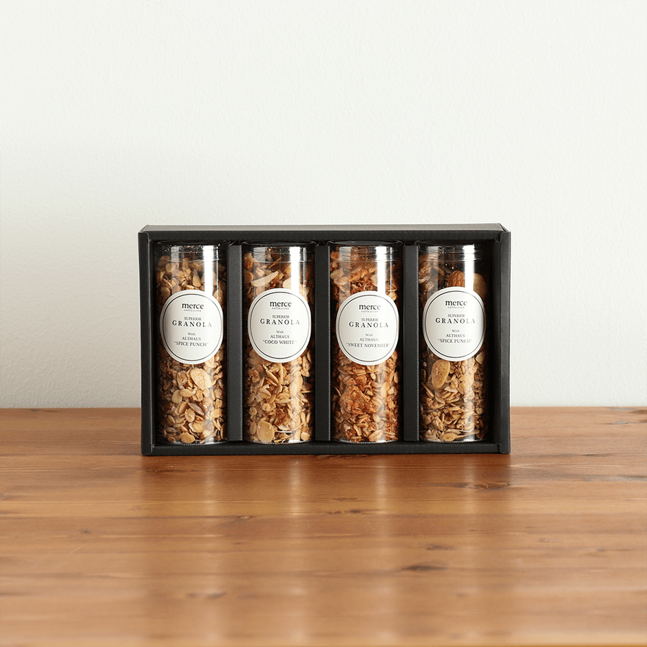アルトハウスの茶葉をブレンドした メルチェオリジナル「ティーグラノーラ」から 特別な贈り物にぴったりのギフトボックスが12月1日に登場!