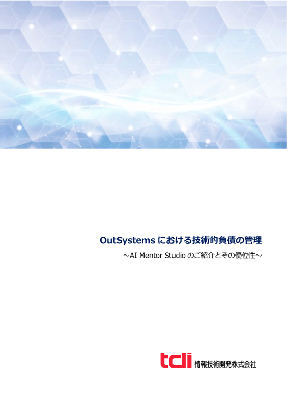情報技術開発株式会社(所在地:東京都新宿区、代表取締役社長:三好 一郎、略称:tdi)は、2023年2月9日、アプリケーション専門の分析を行い、技術的負債の検出・管理を行うOutSystemsが提供するツール、AI Mentor Studio(旧 Architecture Dashboard)の機能と、利用時の利点についてまとめた、『OutSystemsにおける技術的負債の管理』を公開いたします。