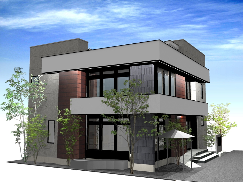 2×4工法による大開口設計を採用し、L字型ライン照明やガラス張りの外観がスタイリッシュな印象を演出。角地という立地特性を活かした設計により、通りすがりでも目を引くデザインとなっています。