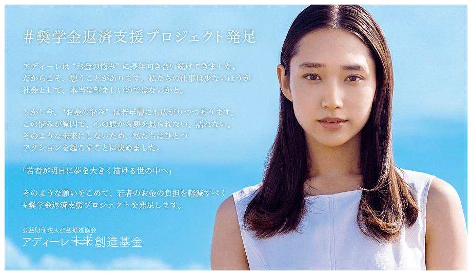 奨学金返済に苦しむ若者を支援し、 夢を応援するプロジェクトを発足! 返済中の奨学金の残金を全額支援! アディーレ未来創造基金 #奨学金返済支援プロジェクト 応募スタート