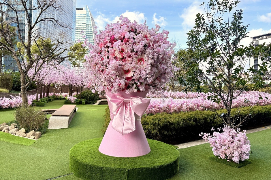 都会の空中庭園 5F「スカイガーデン」が、期間限定でサクラをモチーフにした「サクラスカイガーデン」として、都会の春を彩ります。いち早く咲きほこる天空のサクラ並木や複数のフォトスポットが登場します。夜は、ピンク色のイルミネーションやサクラを連想させる柔らかな光が、華やかなひとときを演出します。