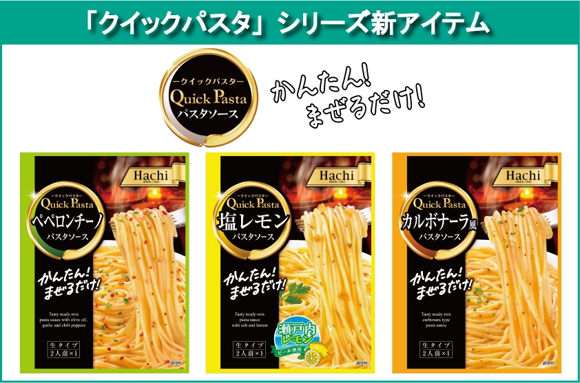 ハチ食品株式会社(大阪府大阪市、代表取締役社長:高橋 慎一)は、当社が展開するかんたん、まぜるだけのシリーズ『クイックパスタ』の新商品として、「ペペロンチーノ」「塩レモン」「カルボナーラ風」の3品を2021年8月2日(月)に発売いたします。
