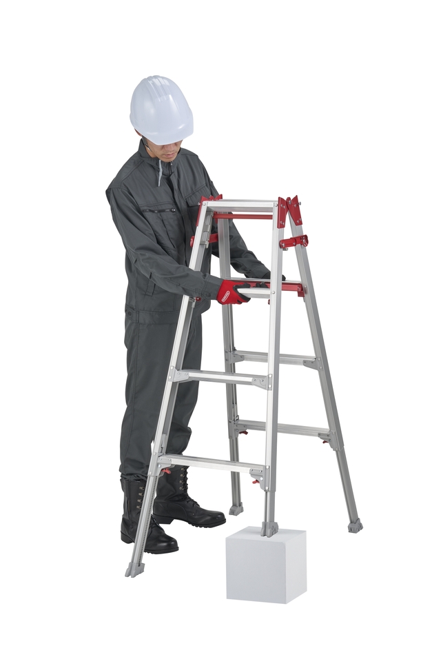 脚立の長さを立ったまま調整でき作業効率アップ! 上部操作タイプのはしご兼用伸縮脚立「シャガマン」が7月5日発売