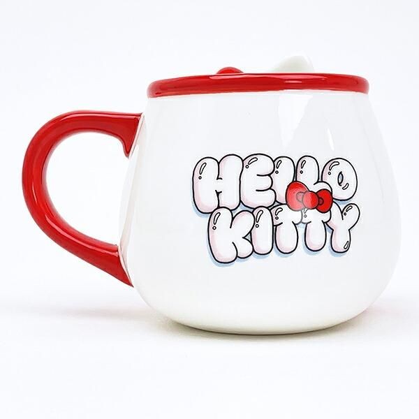 大きなリボンとキティがインパクト大!お色は、白、赤、黒でスタイリッシュですが遠くからみても存在感のあるデザインがさすがエッジーデザインです。サイズ:9.1cm×9.1cm×9.6cm 素材:磁器