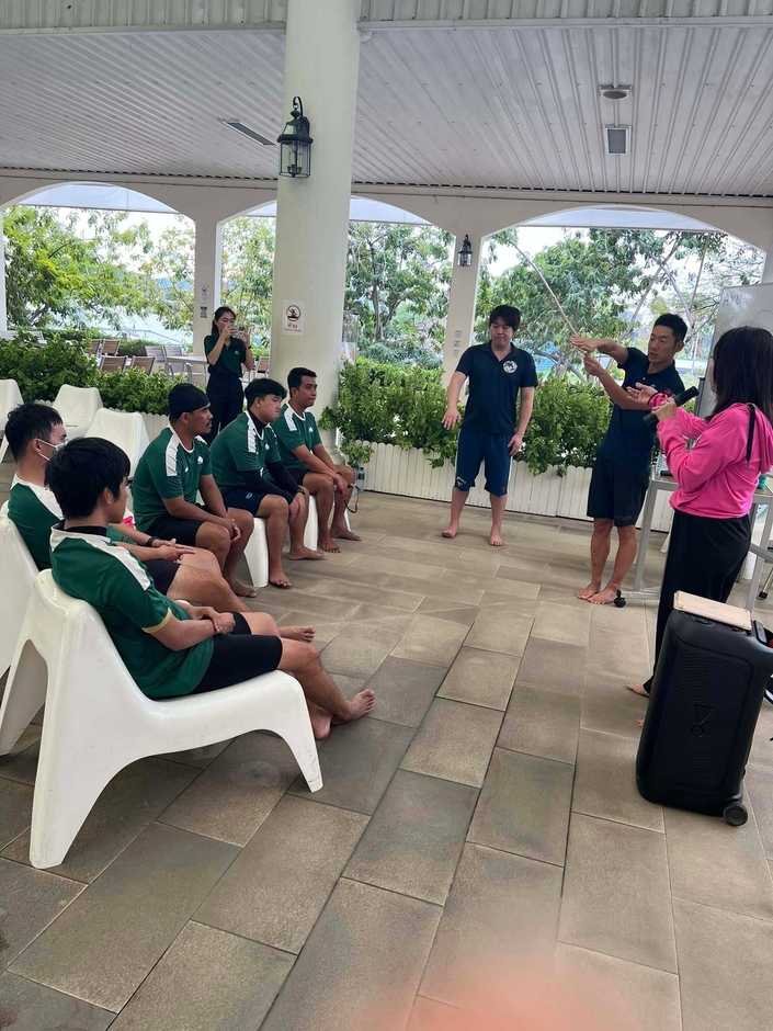 研修では、水泳指導の基礎知識やクロールの基本指導法に加え、水を怖がる生徒への対応方法や、モチベーションを高める褒め方など、日本式の「段階的プログラム」を紹介しました。また、「なぜその練習をするのか」という理由を論理的に説明することで、タイの水泳コーチたちが指導の本質を理解できるようサポートしました。