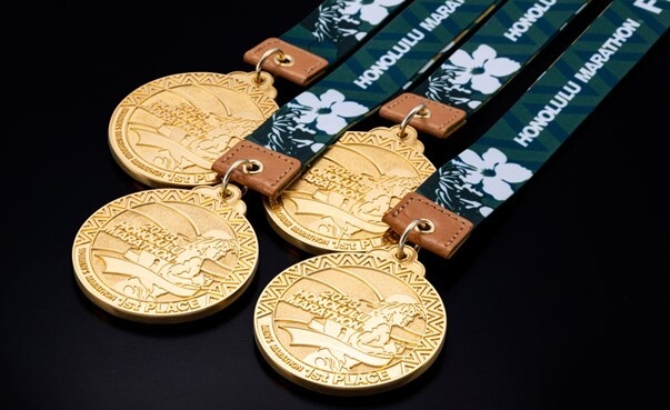 ホノルルマラソン2023 フルマラソン男女優勝者に贈呈される 純金メダル完成!
