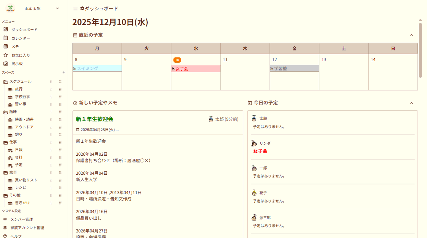 Fammyは、2012年にリリースされた、国産初の家族向け無料グループウェアです。スケジュール管理、ファイル共有、メモ管理、画像アップロード、掲示板、リマインダ機能、コミュニティ機能等を備え、クラウド環境で動作します。家庭ユースに限定した設計思想により、個人には敷居の高かったクラウド環境を身近なものにしました。