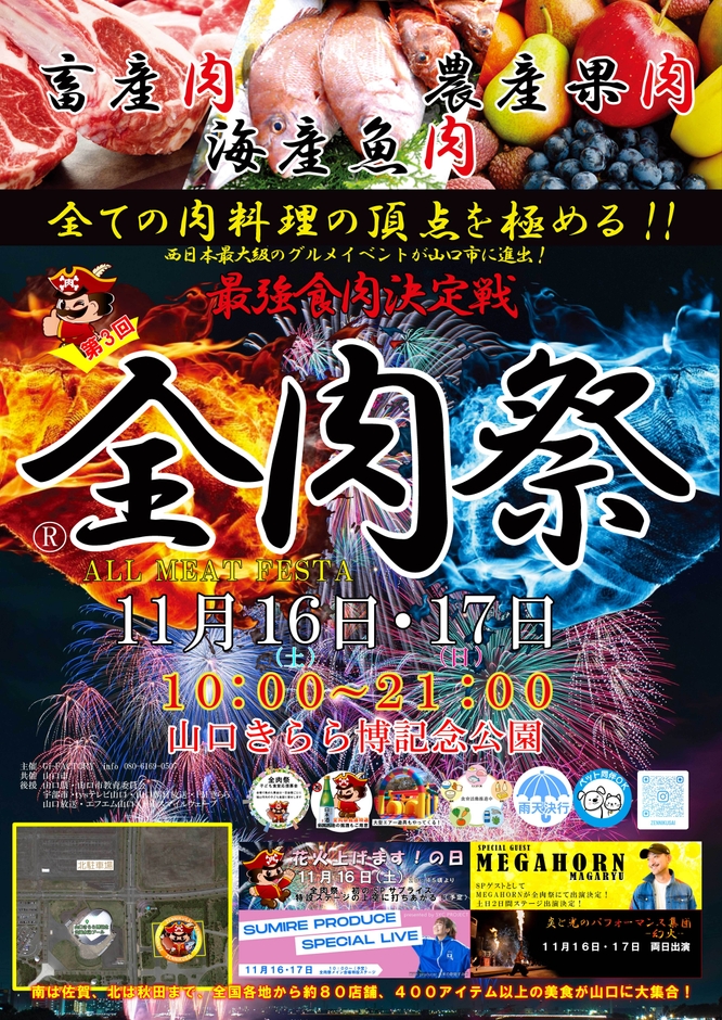 西日本最大級のグルメイベント「全肉祭」 山口きらら博記念公園にて11/16~11/17に第3回開催決定!